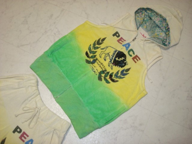 ● 美品 TITIKCACA チチカカ タオル地 ノースリーブ パーカー キュロット パンツ セットアップ 上下 レディース ルームウェア パジャマ M L