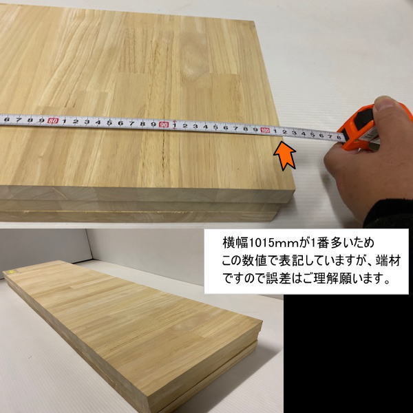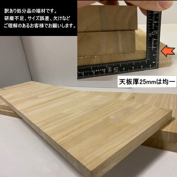 商品説明 | 近くの岐阜県建材工場より、フリー板の端材提供です。 大手住宅メーカー端材になりますので、本来は品質の良い部材です。 端材でお安く手に入れ、DIYで使えるなら利用価値があります。 ■ラバーウッド材は天板、テーブル脚、踏板など強度抜群! ■サイズは違いますが、そこがお買得! ■研磨あり、無塗装、DIYの材料に最適! ■天板厚25mm同じ、奥行350mm同じ、幅のみ違います! |
