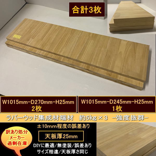 タイトル | 送料無料 訳あり処分 ラバーウッド集成材 フリー板端材3点 強度抜群 1015mm-270mm-25mm-2枚 1015mm-245mm-25mm-2枚 約15㎏ DIYにお勧め |
