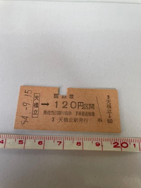 | ◎国鉄線 天橋立→120円区間 天橋立駅発行 B型 硬券乗車券 S.54 店番-硬券264 | |