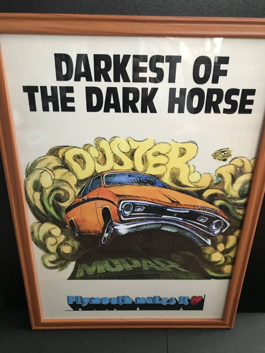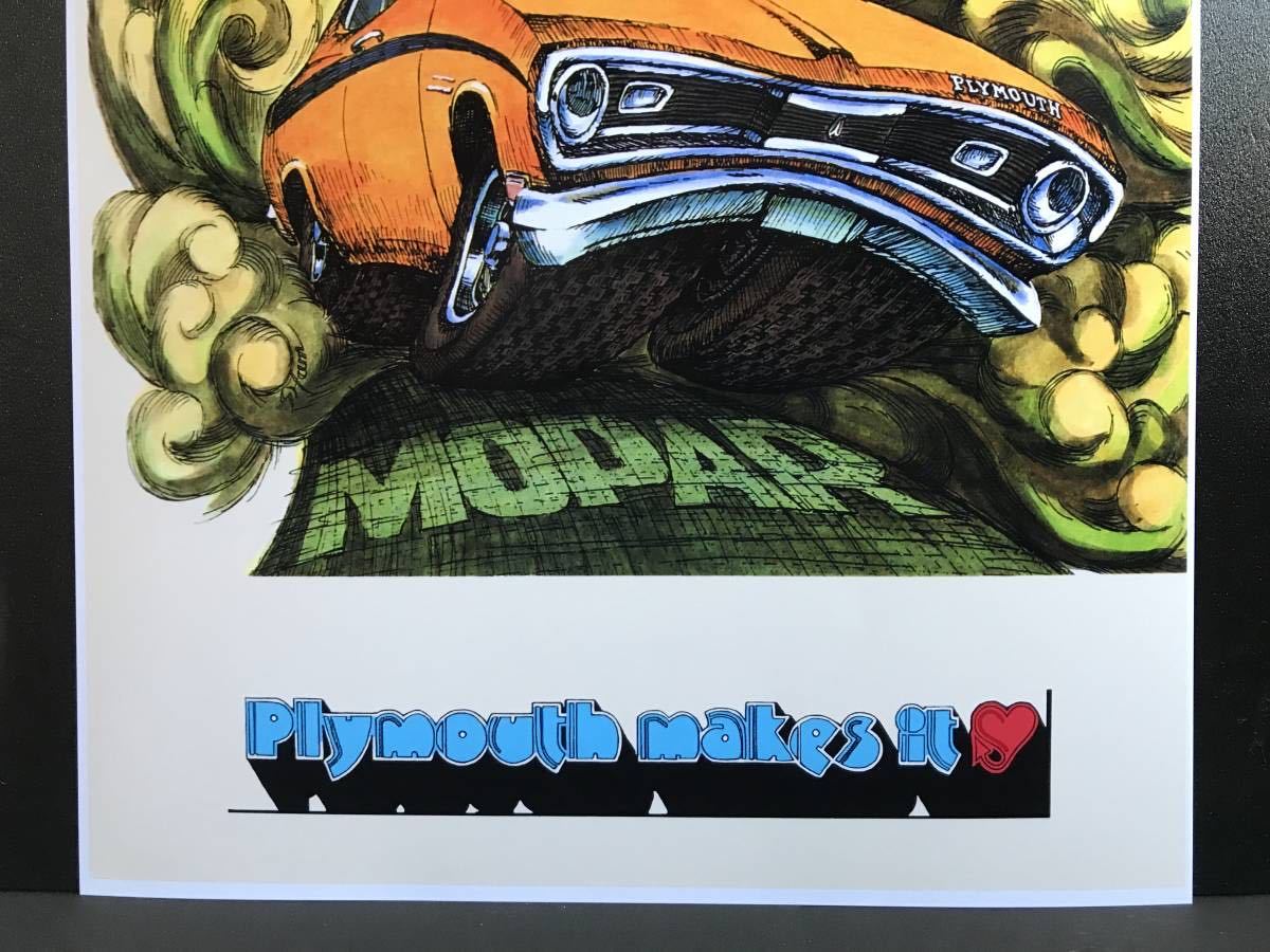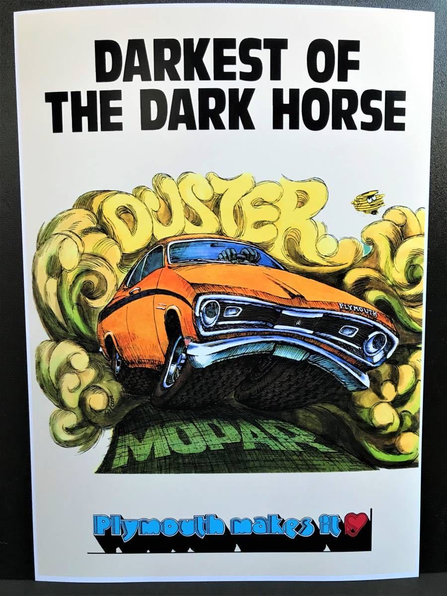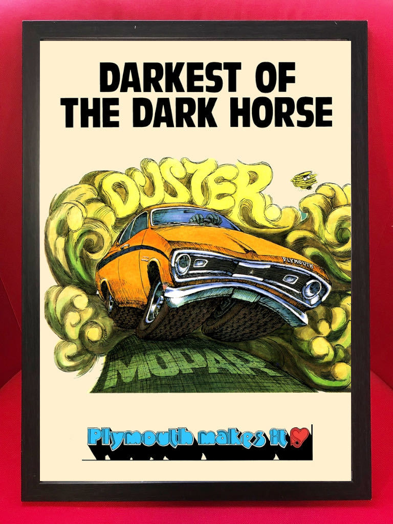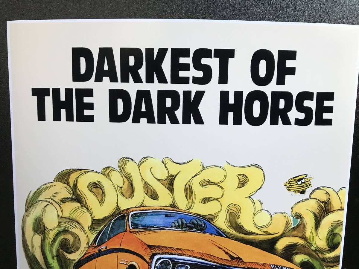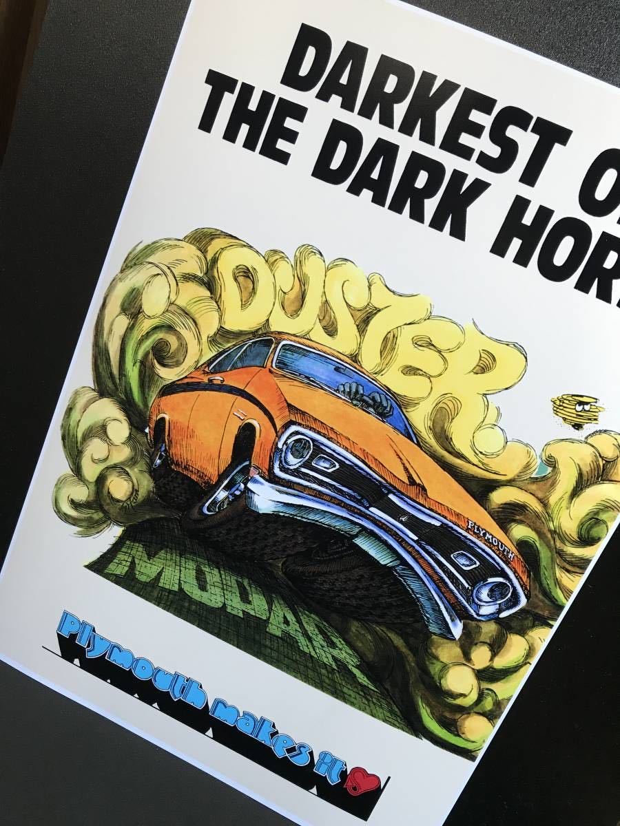 -Plymouth Duster-"Darkest Of The Dark Horse" プリムス・ダスターの珍しいカートゥーンタッチのアートポスターです。 ポスターサイズ:42cm × 29.7cm (額は付属しません。ポスターのみの出品です。額はA3サイズ用がピッタリです) こちらのポスターは高品質で厚みのあるアートペーパーに美しくプリントされたもので非常にハイクオリティなモノです。クラフト紙や布にプリントしたような粗い画質ではありません。存在感があり、しかも飾るのにも困らない絶妙なサイズですので、お好みのフレームに入れディスプレイするのにも最適です。また、しっかりとした厚みのあるポスターですので、そのまま無造作に壁などにピンでとめるディスプレイのスタイルもおススメです。 趣味の部屋・ガレージ・カフェ・ショップ・Bar・オフィスなどに! ※60's・70's・80'sを中心にマニアックな映画・旧車・バイク・音楽バンド関連などの様々なポスターを多数出品中ですのでチェックしてみてください! Click→映画関係ポスター Click→音楽関係ポスター Click→自動車関連ポスターA Click→自動車関連ポスターB Click→オートバイ関連ポスター Click→その他ポスター | ||