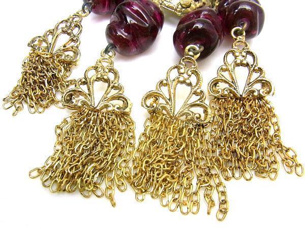 レッドカラーのガラスビーズ、チェーンのフリンジをあしらった