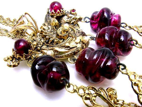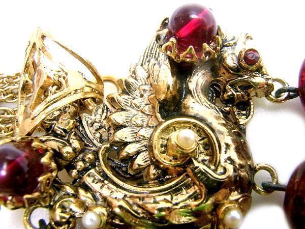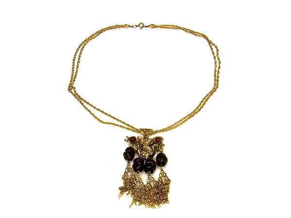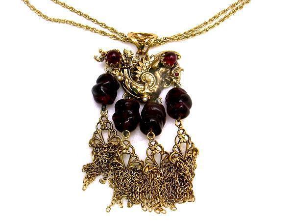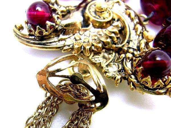 ヴィンテージ フランス ゴールド×レッド フリンジ ネックレス