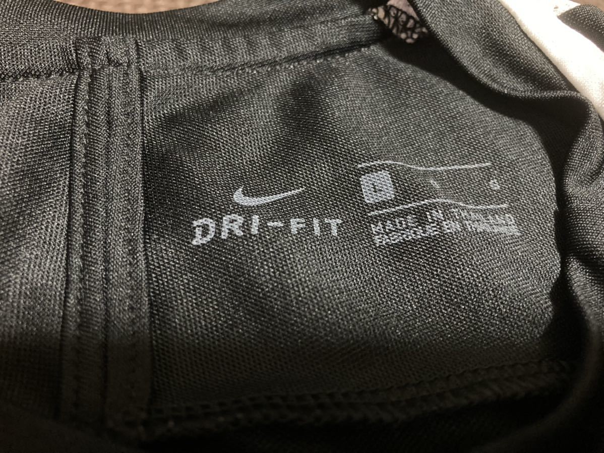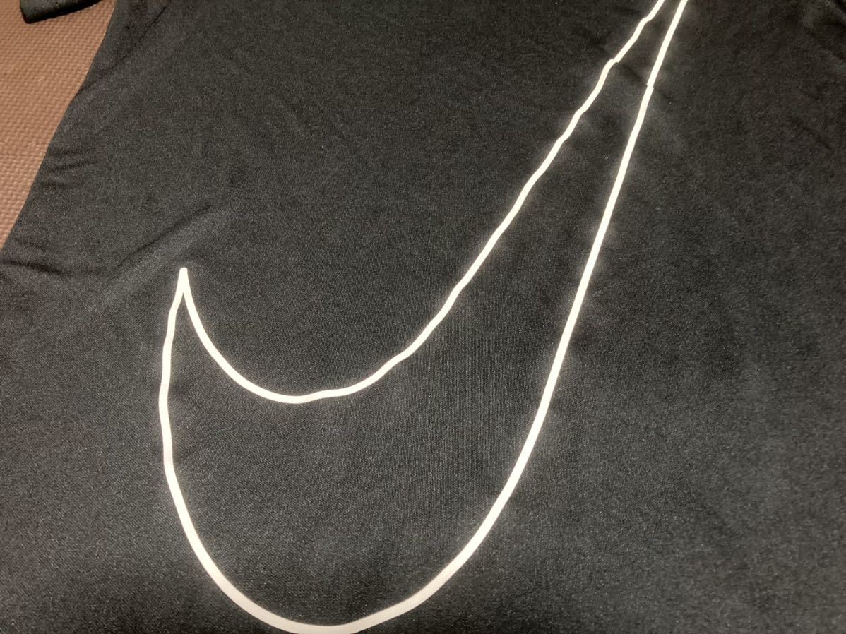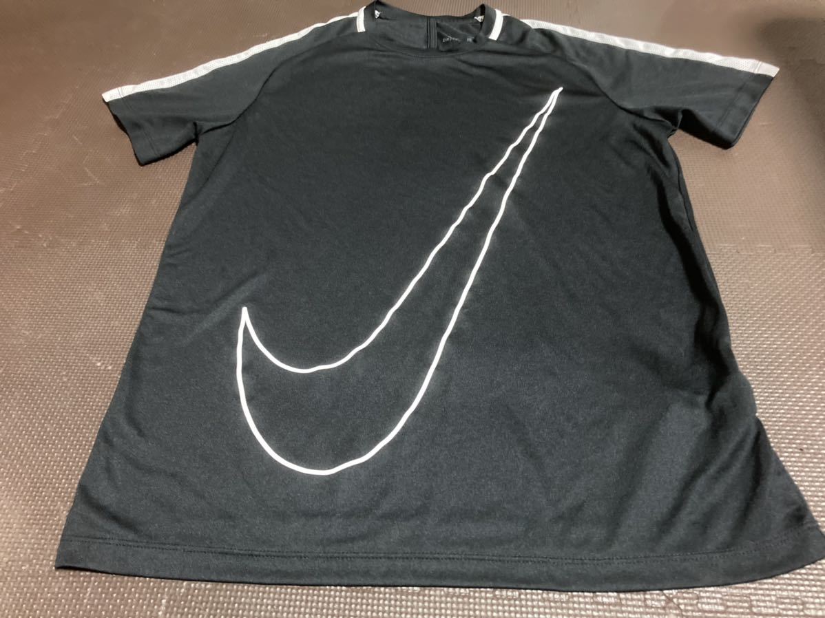 美品NIKE DRI-FIT黒、ロゴ白、半袖ストレッチトップス