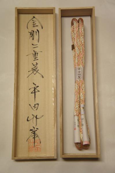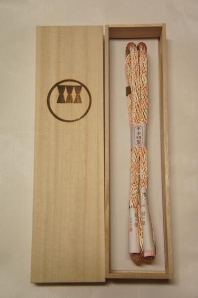 製作 誂え平田組紐謹製 渡敬誂え  特選新品うすローズ色金糸白糸金剛二重菱丸組帯締 画像参照