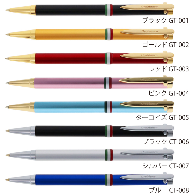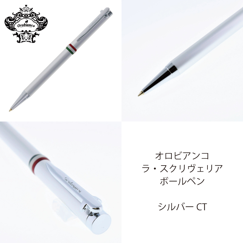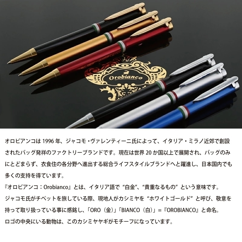 クリップにはオロビアンコのロゴが刻印され、ボディにはイタリアを表すトリコロールが配されて落ち着いた雰囲気を醸し出しています。