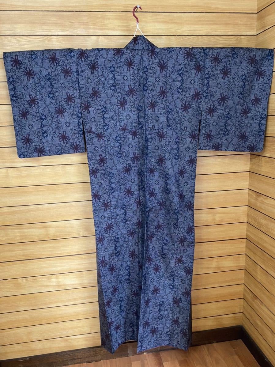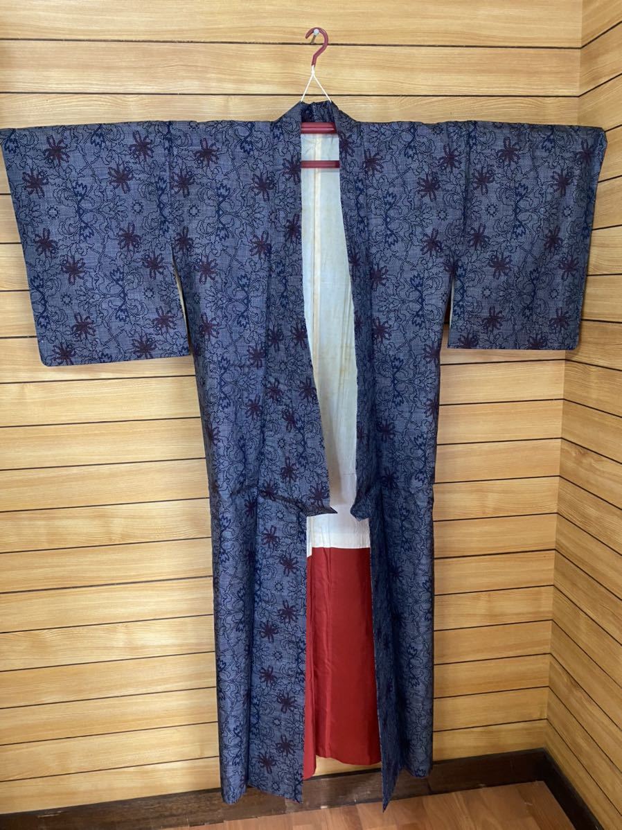 美品! 身丈152cm ★花柄 紺色 袷 日本舞踊 訪問着 着物