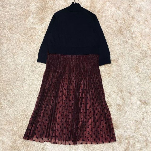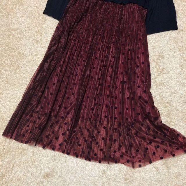 上身頃はニット素材・スカートは張りのあるレース素材で透け感がございます。