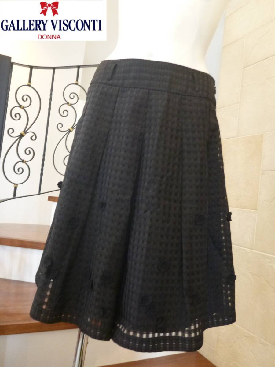 美品 ギャラリービスコンティ - GALLERY VISCONTI★ 黒 花モチーフ スカート 2 M相当