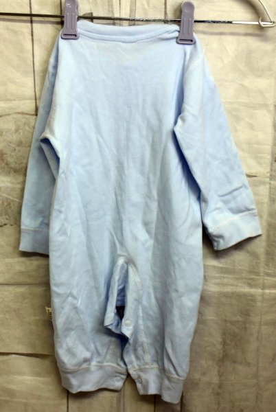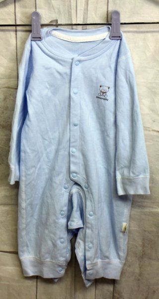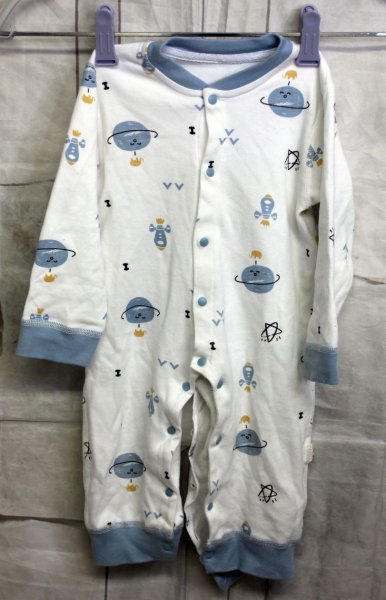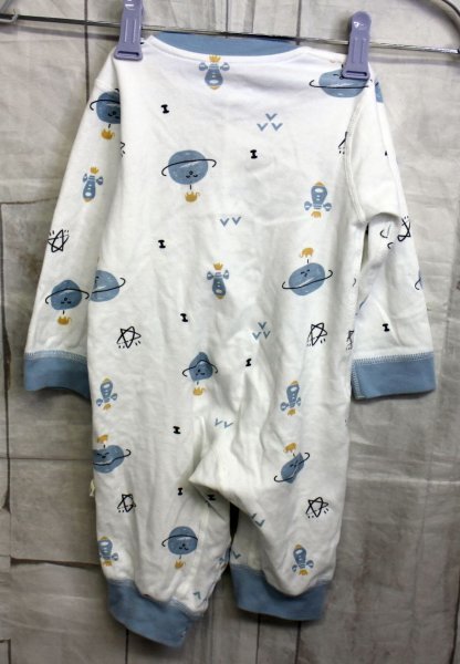 15 00139 ☆ 長袖カバーオール 白青2枚セット 綿100% 80サイズ ベビー服 赤ちゃん服 ロンパース 前開き【USED品】