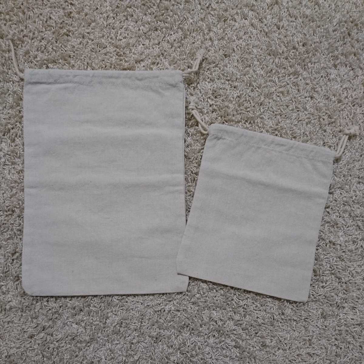 生成りの生地で出来たナチュラルな雰囲気のある巾着袋2枚セットになります。