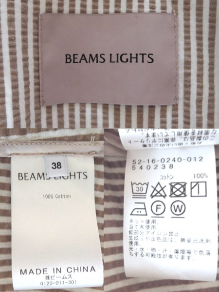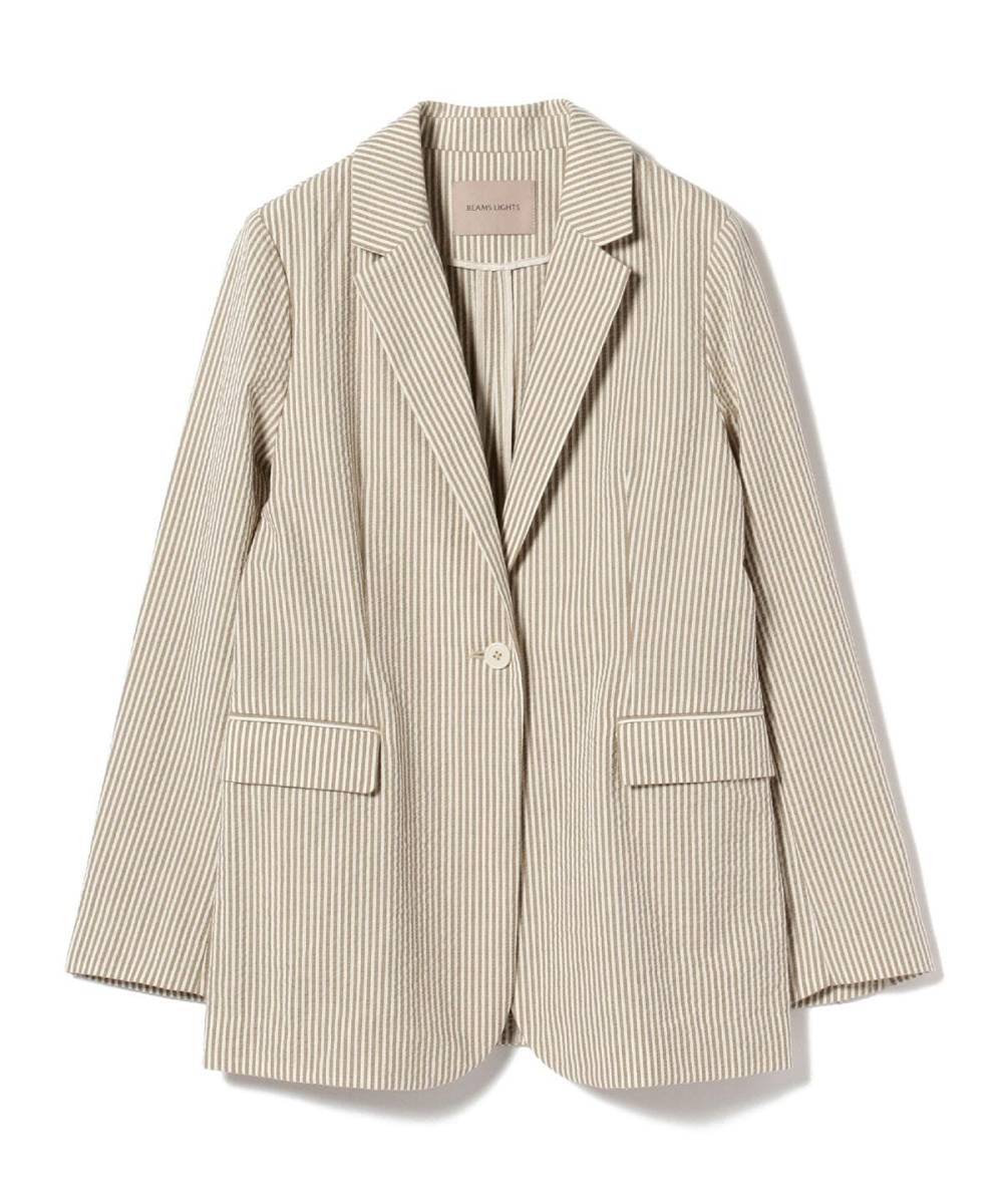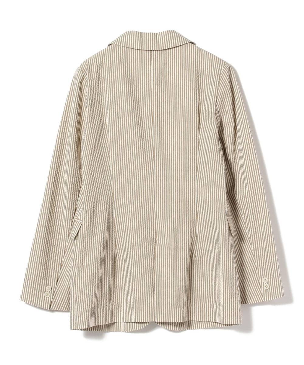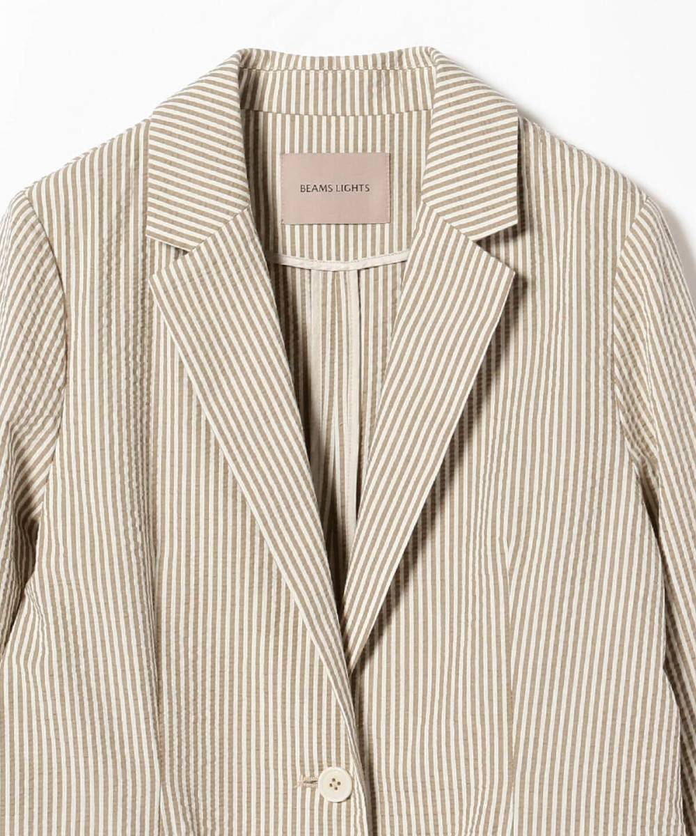 BEAMS LIGHTS ビームス ライツ サッカー ストライプ テーラードジャケット 羽織 ベージュストライプ サイズ36