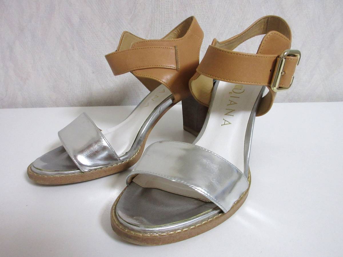 ダイアナ DIANA バイカラー サンダル シルバー ブラウン 21 1/2 北5075