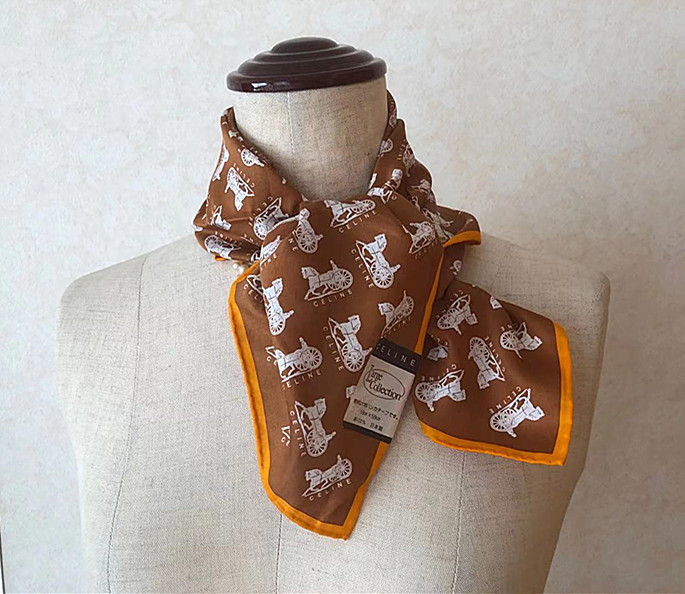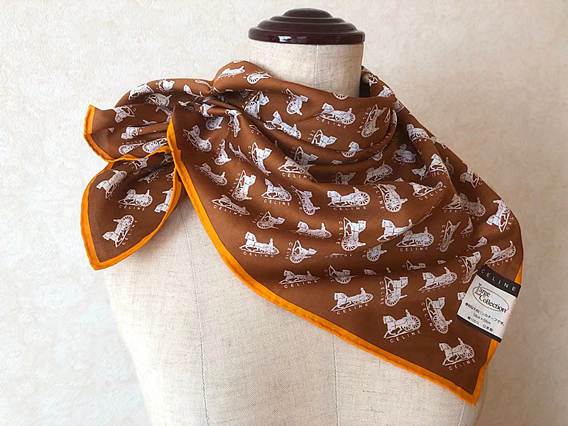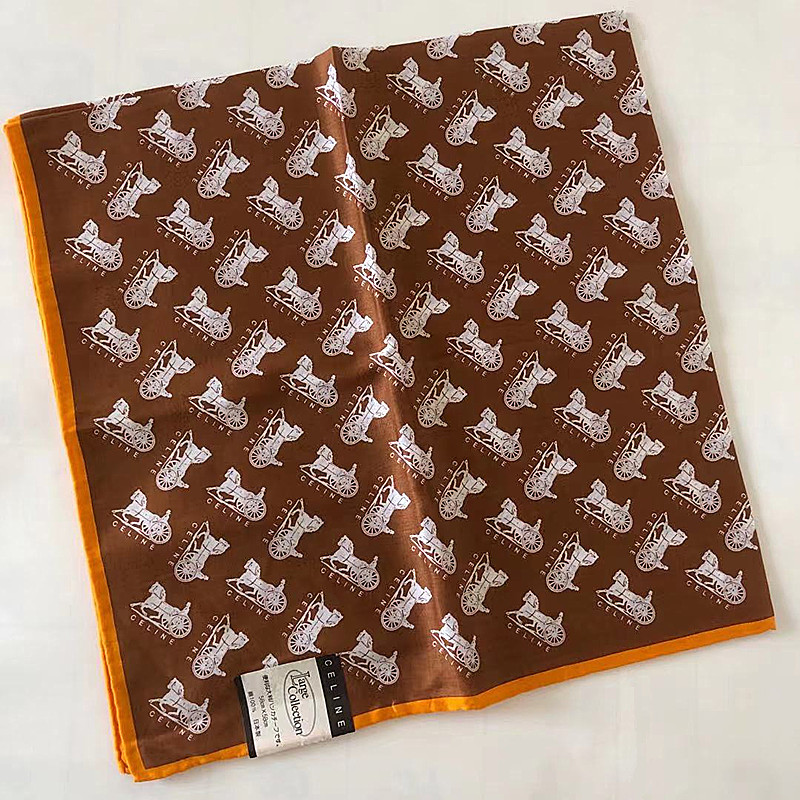 新品CELINEセリーヌレア柄◆超人気馬車柄大判ハンカチミニスカーフ●膝掛け58×58㎝