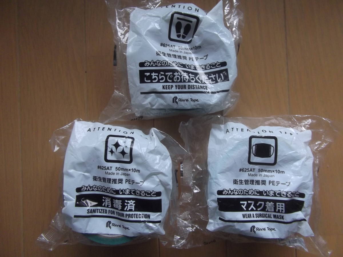 画像のような『 衛生管理推奨テープ 3種(未開封新品) 』の出品となります。
