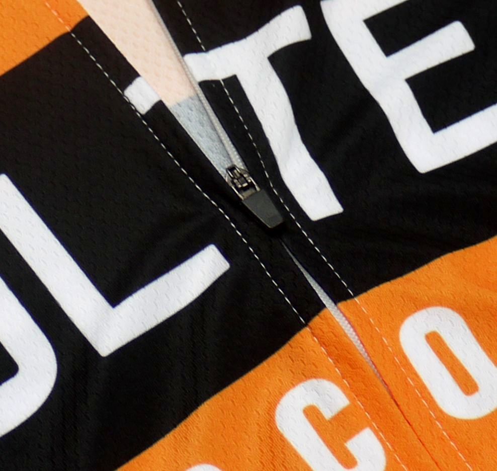 トップスはフルジップタイプ、背面にウェア滑り止め、バックポケット付きです。