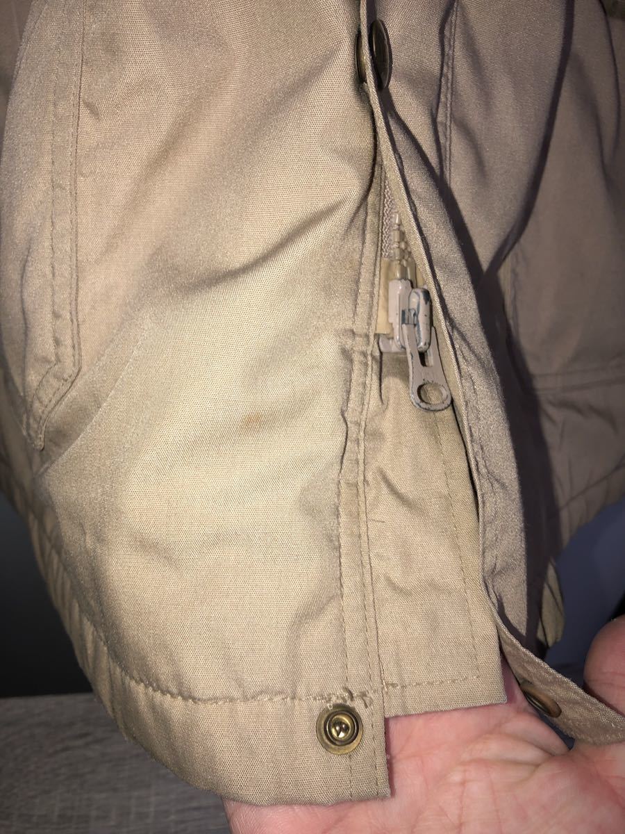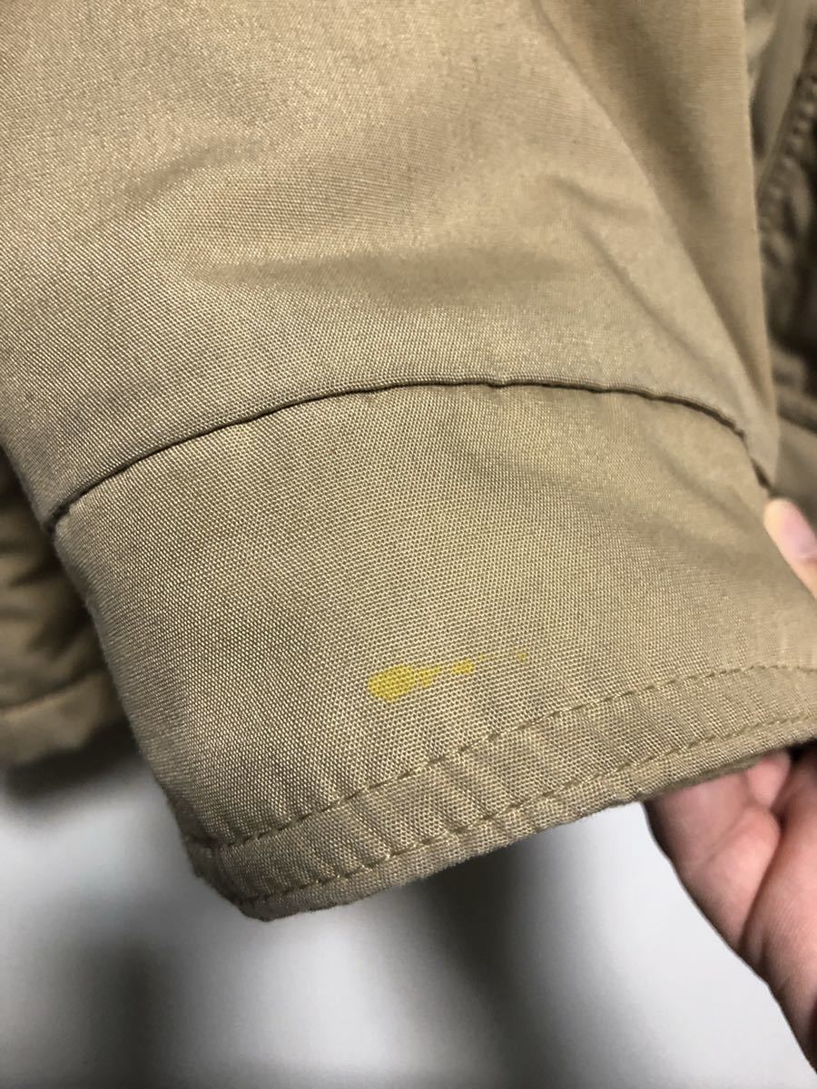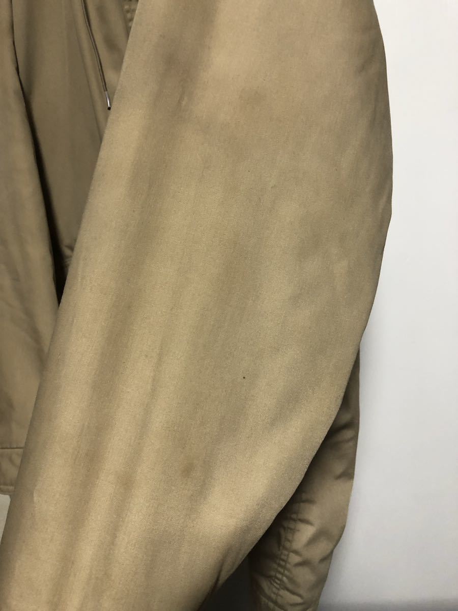 状態は右袖黄色いシミ、右袖薄いシミ。両袖口薄ヨゴレ。背面に薄いシミ。洗い方で落ちそうな物です。USEDです。着用に支障のあるダメージ等なくまだまだ着用して頂けます。