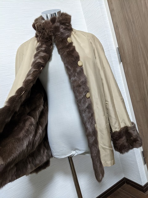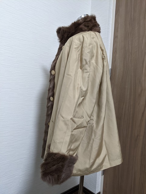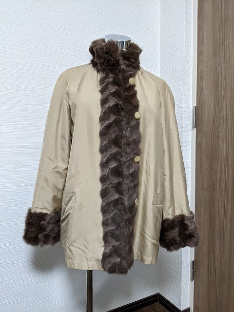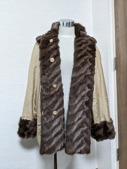 お色は布がベージュで毛皮がアッシュブラウン、モカブラウン系ミックスです