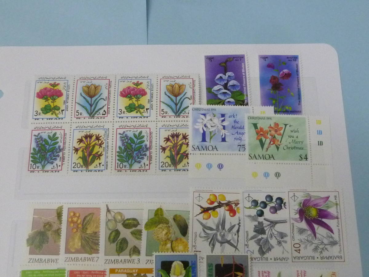 22 P 植物切手№43 世界各国 イラン・ブルガリア・インド・他 大部分各完揃 計39種 1リーフ 未使用NH VF