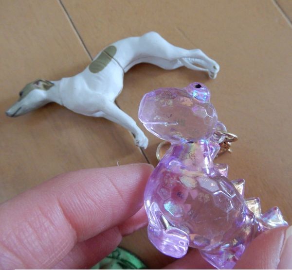 12.恐竜のクリアキーホルダー/ピンクに近い紫