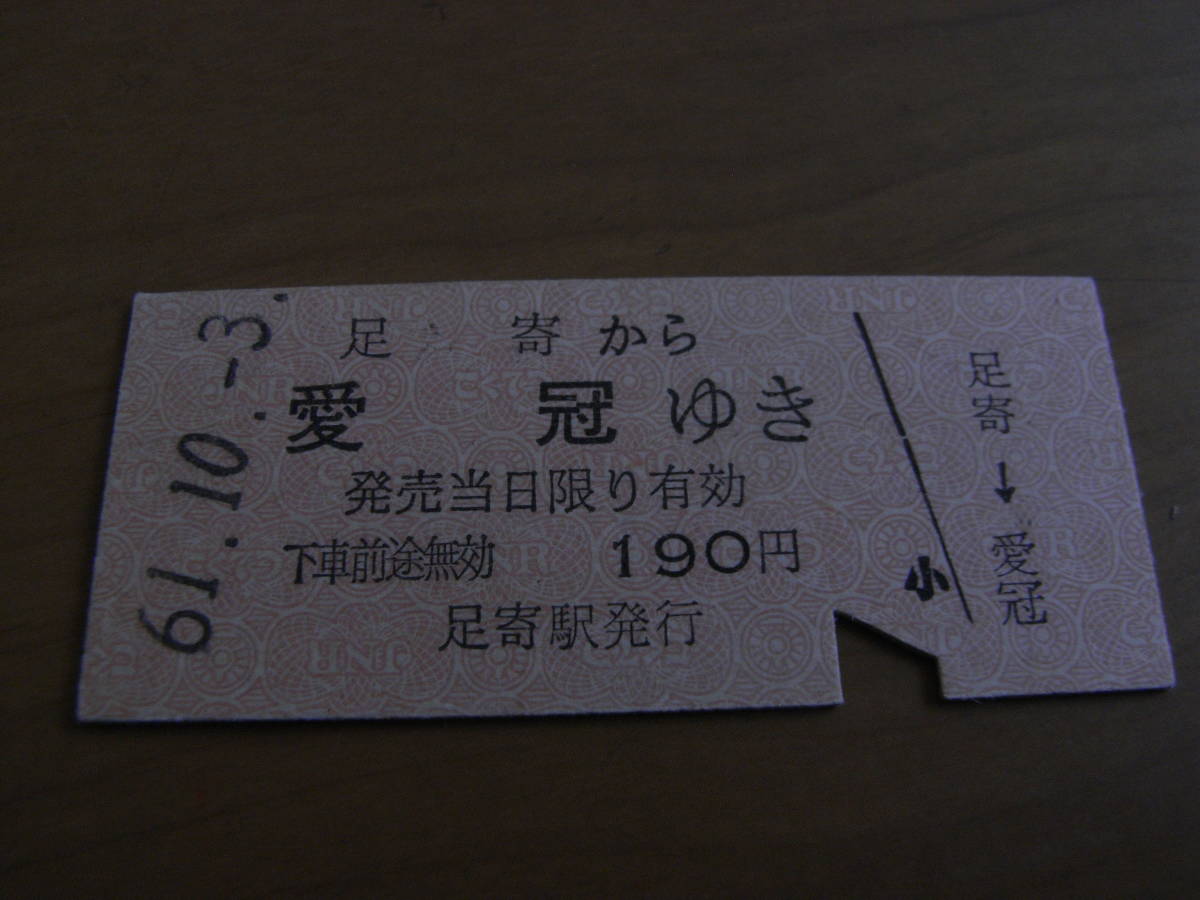池北線 足寄から愛冠ゆき 190円 昭和61年10月3日 足寄駅発行