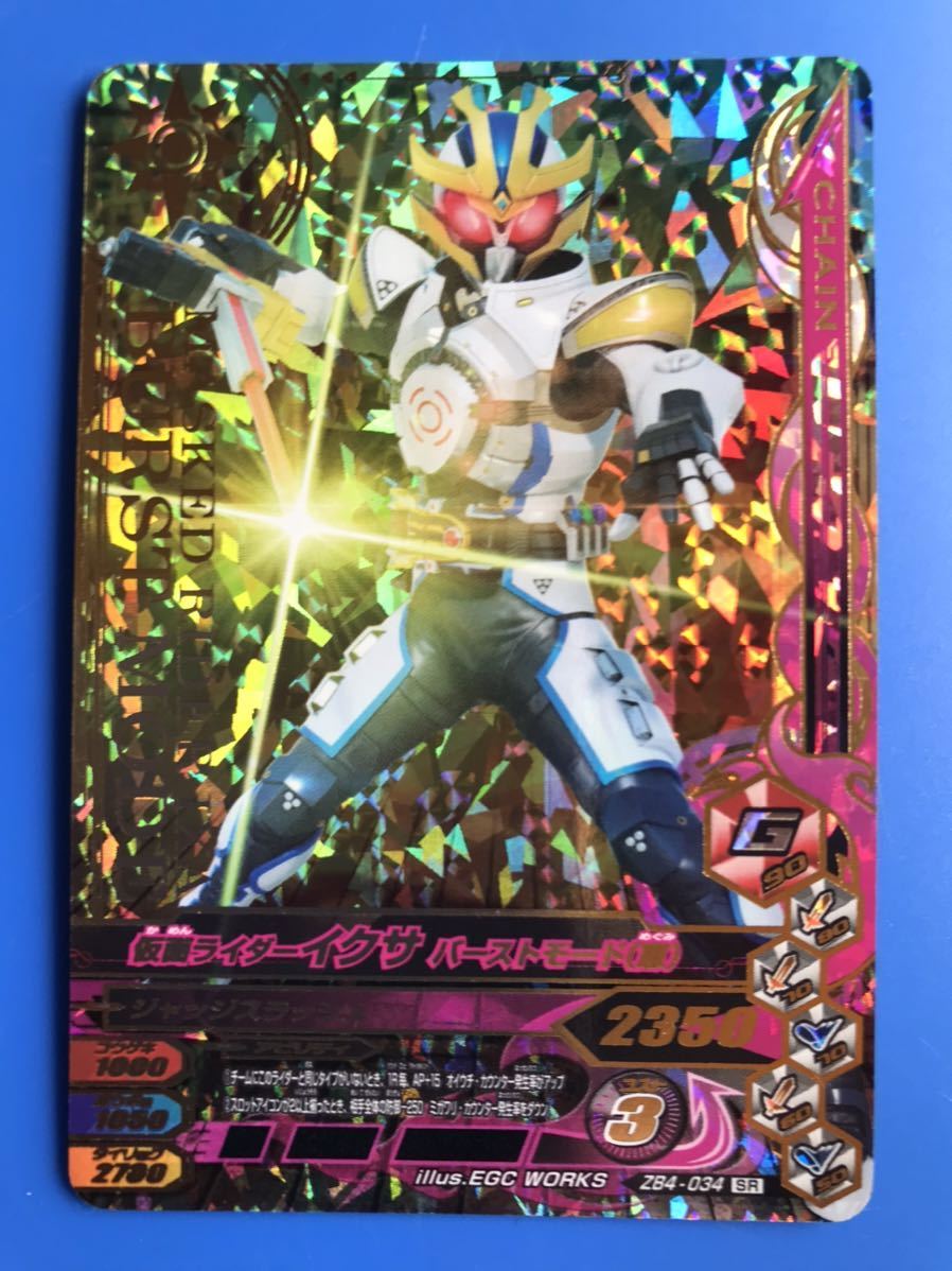 仮面ライダー、ガンバライジングの第ZB4弾から、スーパーレアカード、No.034《仮面ライダーイクサ・バーストモード(恵)》の登場です。発送は、普通郵便を利用します。(特にご希望のない場合)おとりまとめも可能ですが、送料に変動する場合がございます。また、送料のご請求は、自宅での計量を基準にご請求させていただいておりますので、実際の金額と差異が出る場合もございます。予めご了承ください。他にも多数出品中です。まとめてこの機会にいかがでしょうか?ご質問お待ちしております。