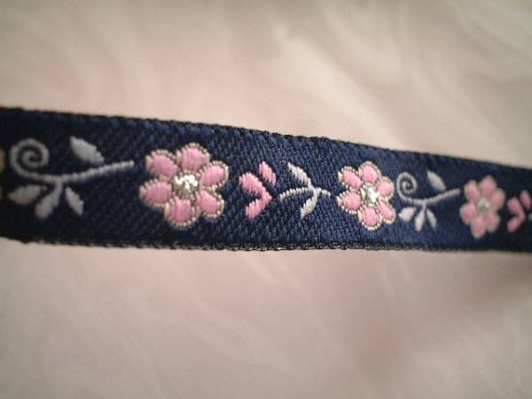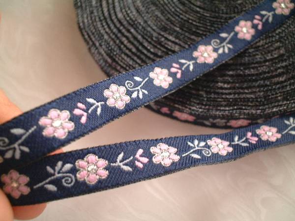 ご覧頂きありがとうございます。 紺色ベースにピンクのお花と中央の銀の糸がキラリと映えるチロリアンです。 リボンの巾は12mmになります。 お取り置きも承りますので、落札後に1度必ずご連絡くださいませ。 オンラインショップとの同梱も可能です。 | ||
