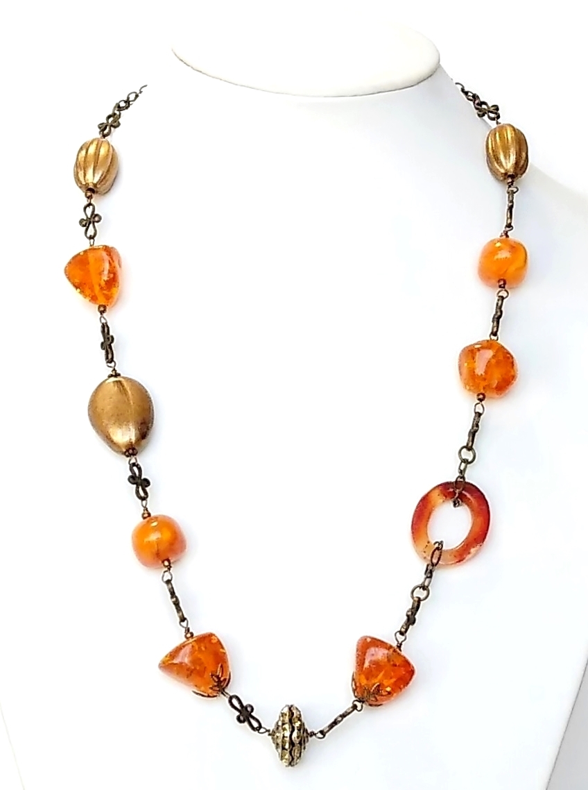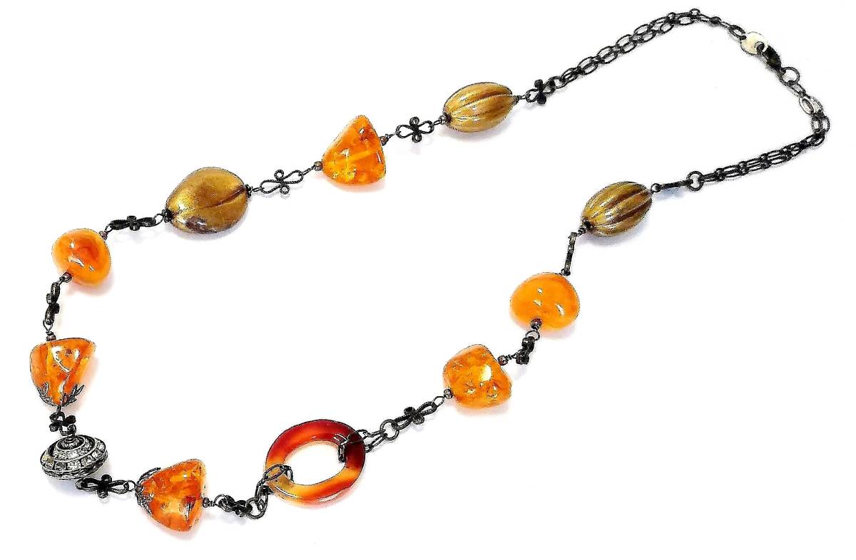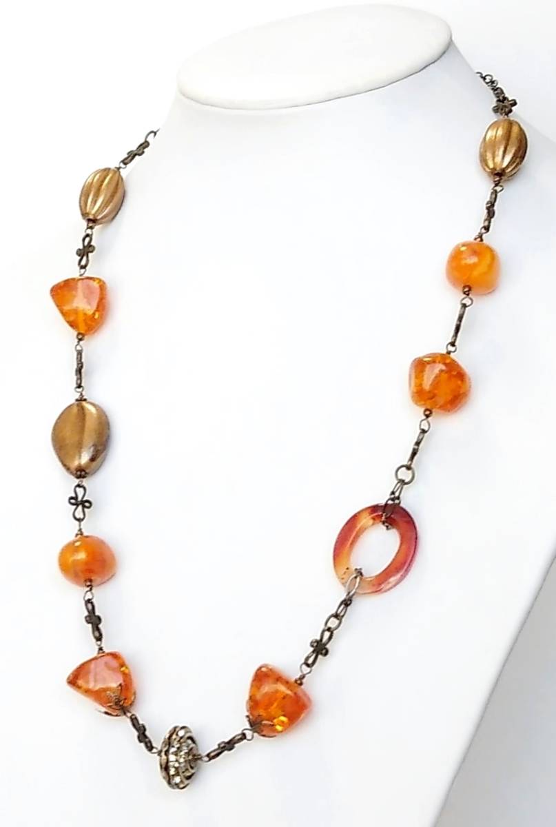 ★ハンドメイド★1点もの★ドイツビーズ・カーネリアンのロングネックレス | |||