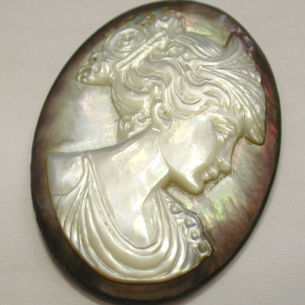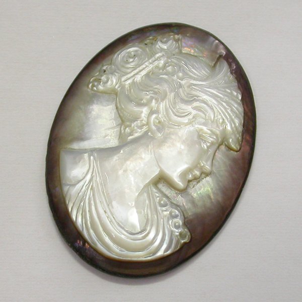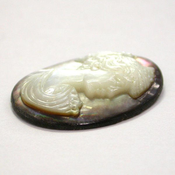 シェルカメオ 4.0g(20ct) 女性の横顔 貴婦人 29.8mm×22.9mm ルース 裸石 貝 彫刻 黒蝶貝 ブローチに | ||||