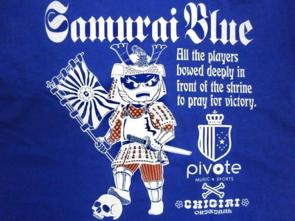 | 【商品の特徴、その他】 | CHIGIRI/チギリは、元々は老舗の鞄屋さんで、「和/Japanese」と「洋/American」をテーマにしたデザインをモットーに、和柄素材を使って色々な小物やウエアーを制作しています。 その契/チギリとスポーツバーPIVOTEとのコラボTシャツから、和柄プリント「サムライブルー」柄・半袖Tシャツのご紹介です。 ●素材は、柔らかな綿(コットン)100%の契オリジナル・天竺Tシャツ生地が使用されています。 ●CHIGIRIちゃんがサムライに扮して、ボールをキック! ●2014年のワールドカップに向けて!これを着てみんなで日本を応援しよう!!日本チームユニホームにはちょっと抵抗がある方にもおすすめです。 ●もちろん、ワールドカップシーズン以外でも着られるデザインで、おすすめです! |