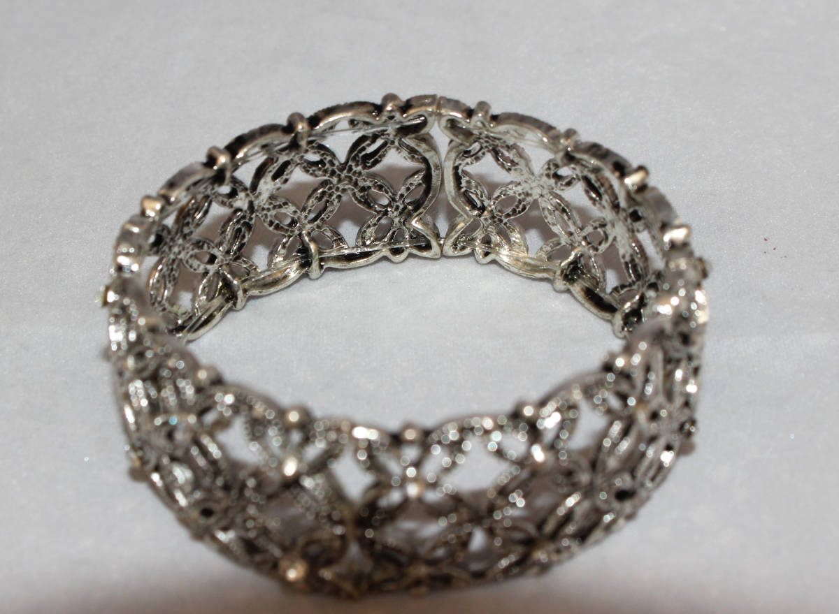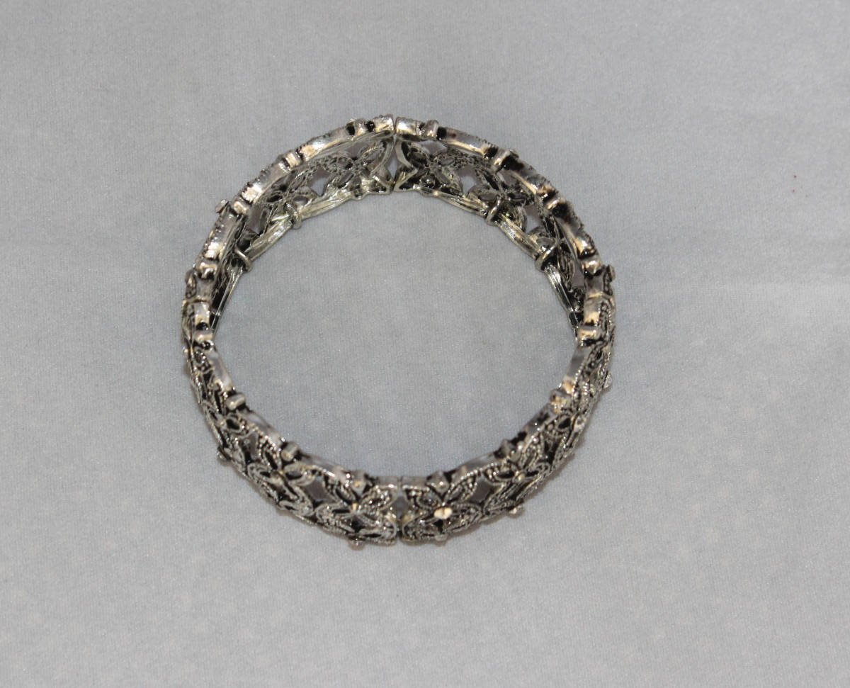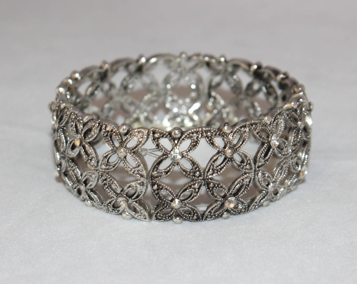 緻密にカットアウトされたフラワーモチーフに、スワロフスキークリスタルを交互に配した