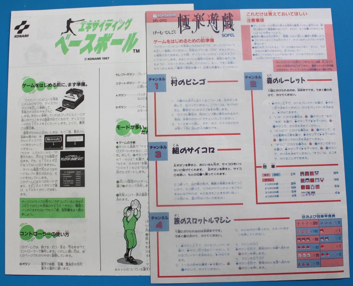 1987 7種類 ファミコンディスクシステム 取扱い説明書シール付き