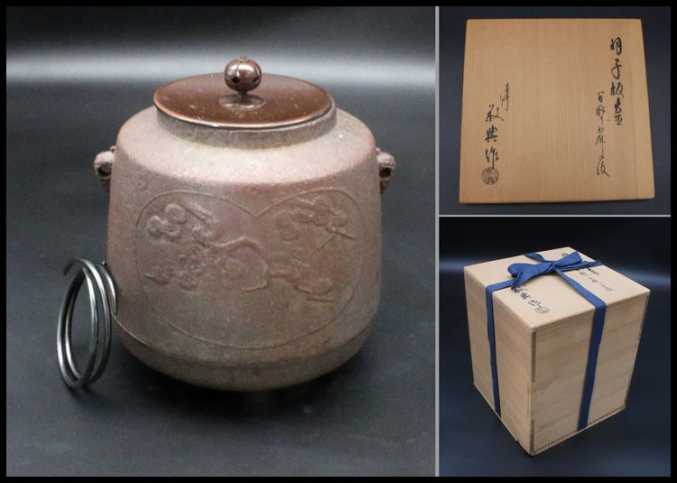 茶道具 釜師・高橋敬典 間取松竹地紋 羽子板釜 共箱 釜環をお預かりしまして出品しました。