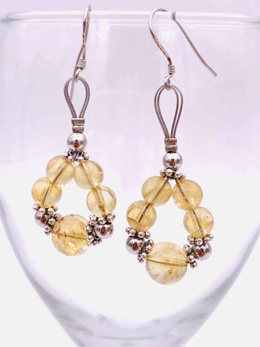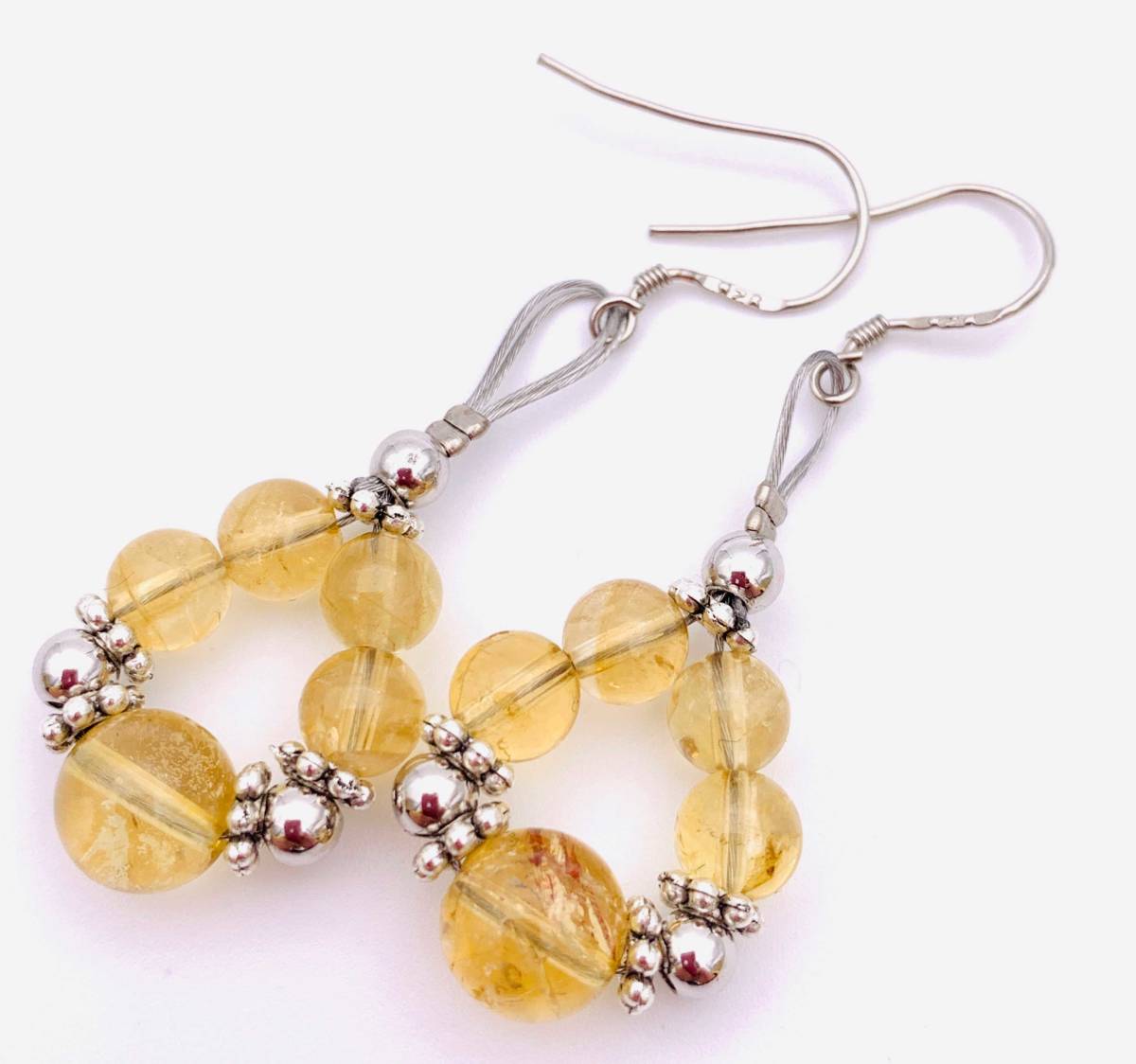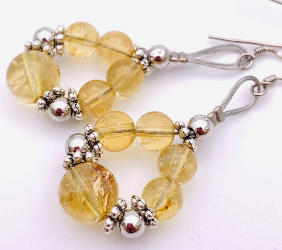 手作り!オリジナル★天然石シトリン(黄水晶)のピアス