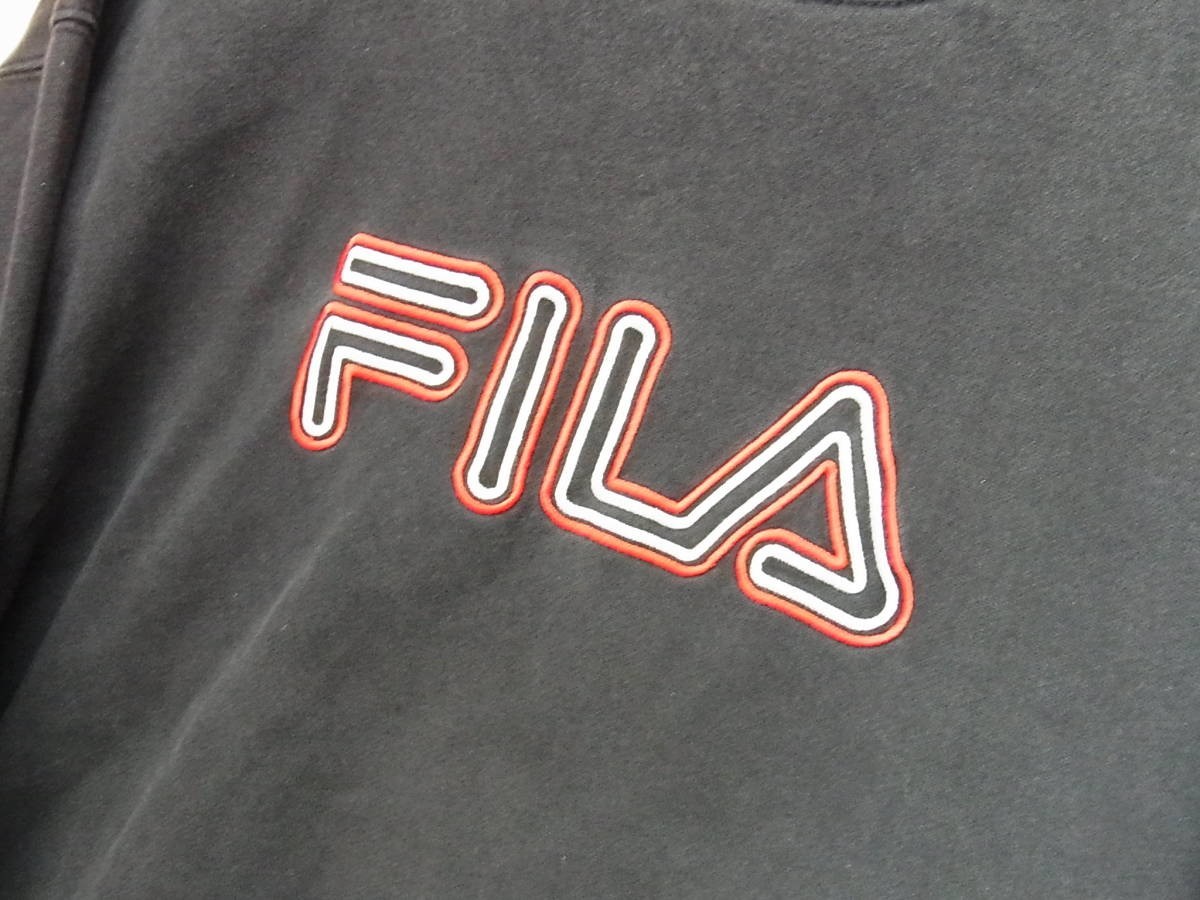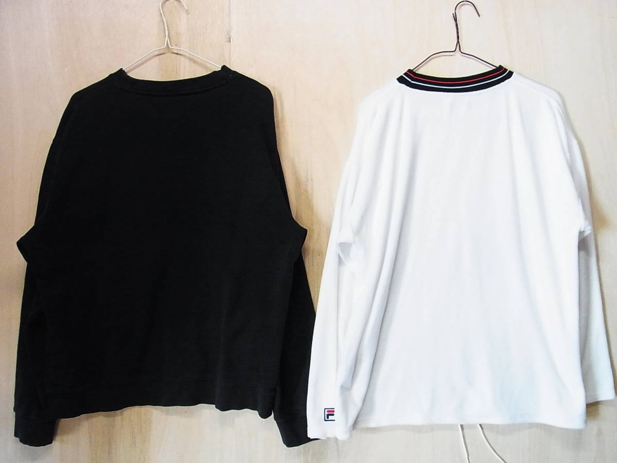 人気 FILA フィラ ロゴ刺繍 クルーネック スウェット 黒x白 大き目 共にMサイズ位 | ||