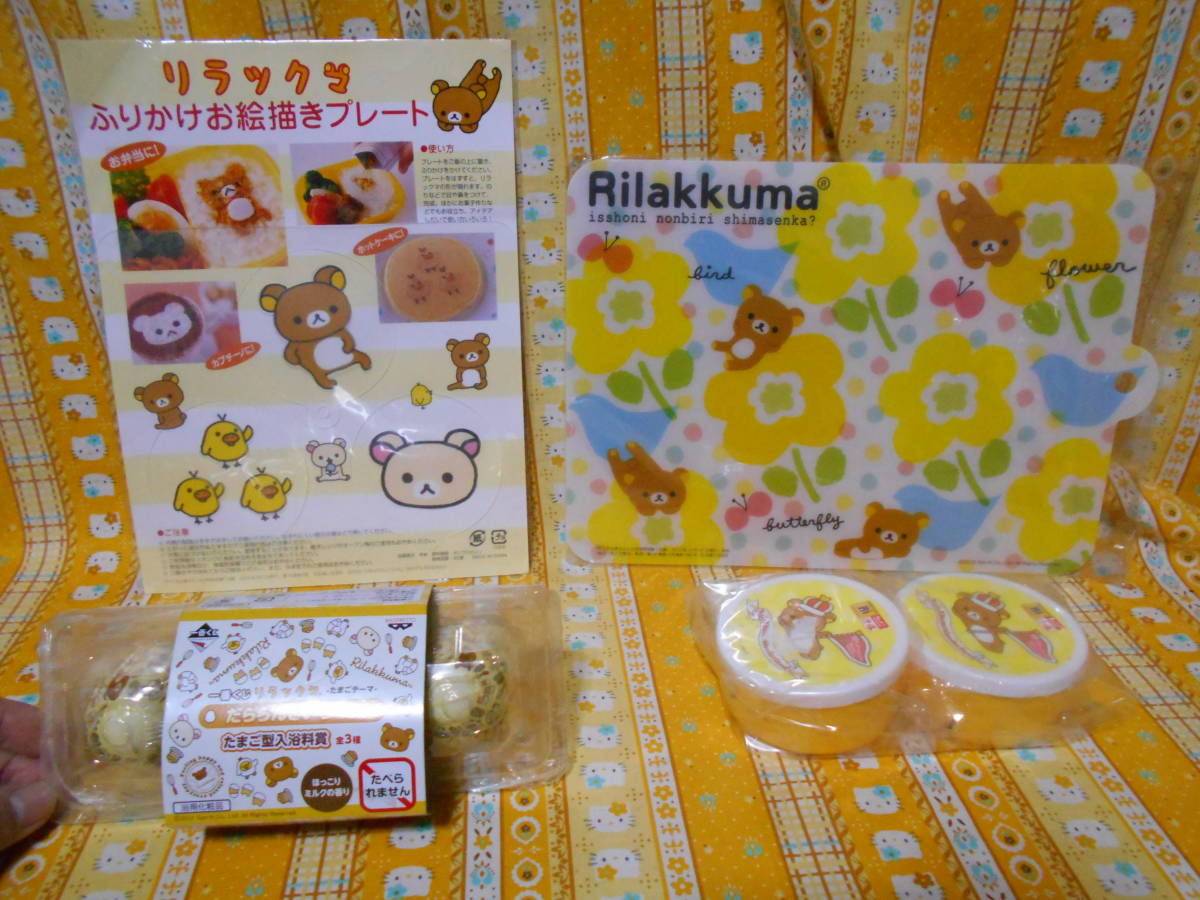 ♪リラックマ新品&美品ふりかけお絵描きプレート&プラスティック製まな板&たまご型入浴剤&浜勝デザートケース2個