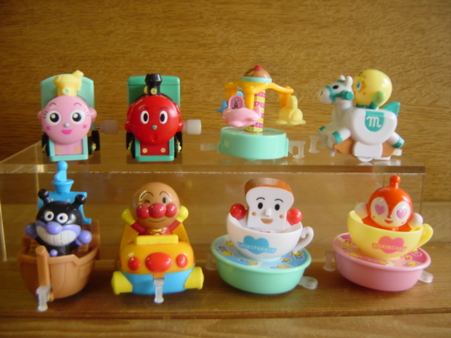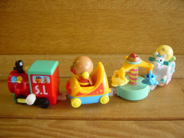 1.SLマン(ゼンマイ) 2.アンパンマン(ジェットコースター) 3.しょくぱんまん(コーヒーカップ) 4.ドキンちゃん(コーヒーカップ) 5.ポッポちゃん(ゼンマイ) 6.ばいきんまん(海賊船) 7.メロンパンナちゃん(木馬) 8.アンパンマンスカイタワーNewギミック! ◇みんなで遊園地に遊びに来たよ♪ |