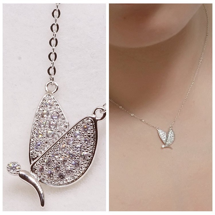 | 18KRGPプラチナCZ蝶々揺れネックレスyn3095 | |
