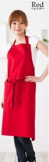 送料無料 シンプル エプロン カフェ風 無地 作業エプロン 男女兼用 レッド