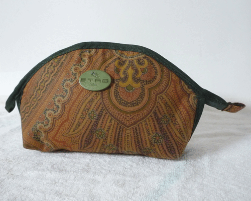 良品 エトロ ETRO ナイロン 小物入れ ポーチ ペイズリー柄 ブラウン系 グリーン | ||