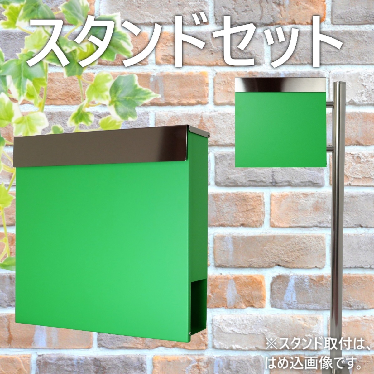郵便ポスト郵便受けおしゃれ北欧大型鍵付きマグネット付きスタンド型 グリーン緑色ポストpm281s-pm331