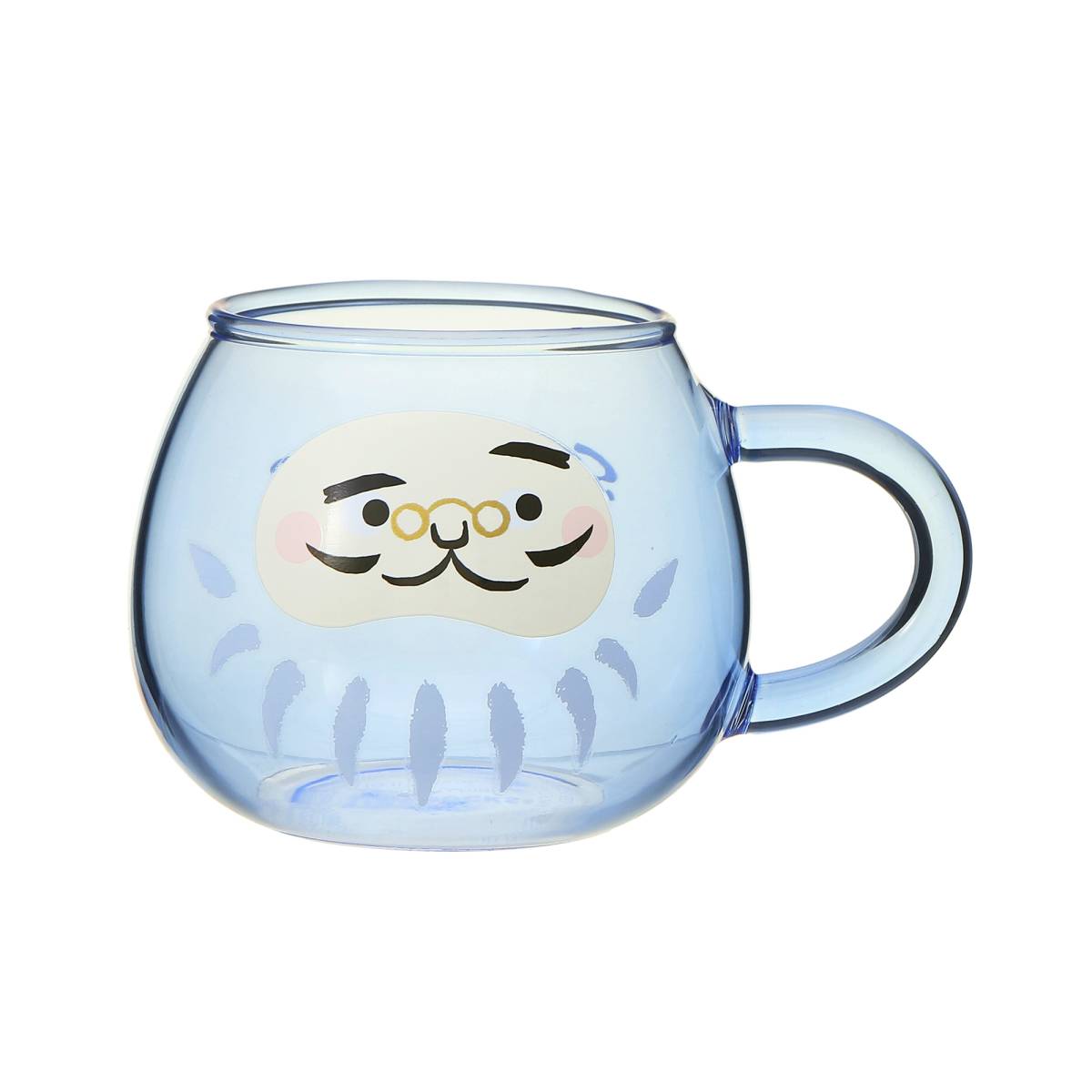 丸めがねをかけただるまの耐熱グラスマグ