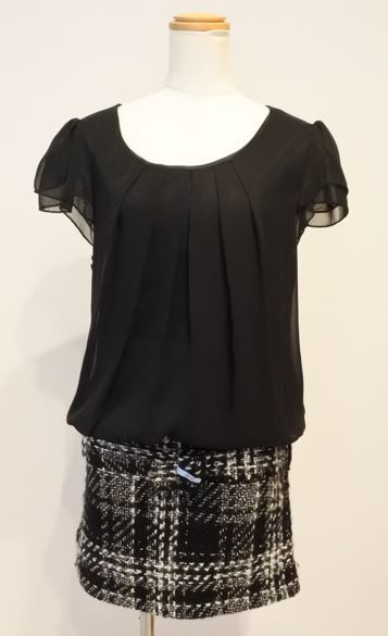| INTERPLANET インタープラネット ワンピース シフォン ツイード 半袖 02 ブラック mrutkik a201h0114 | |||