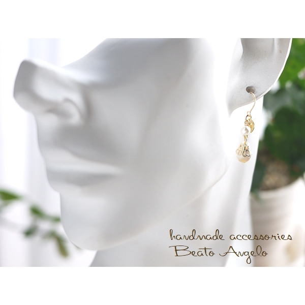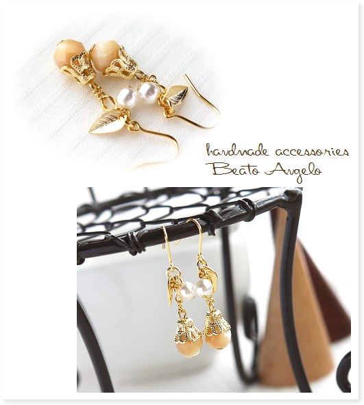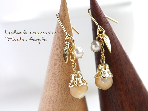 ◇◆+angelo+天然石マザーオブパールとパールのプチピアス(p-0121)G カフェオレ プチ001 スワロフスキー シンプル ベージュ