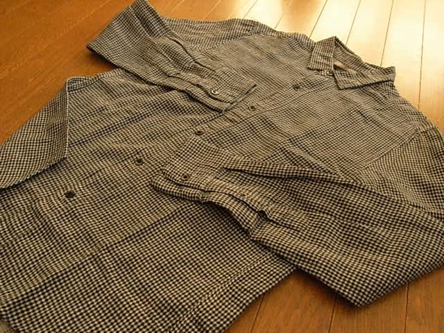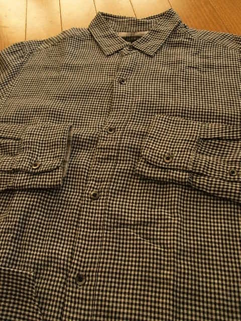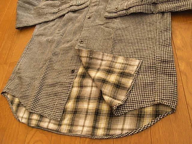 ジュンメン かっこいい長袖ドレスシャツ ブラック&ホワイト系 チェック柄 サイズM