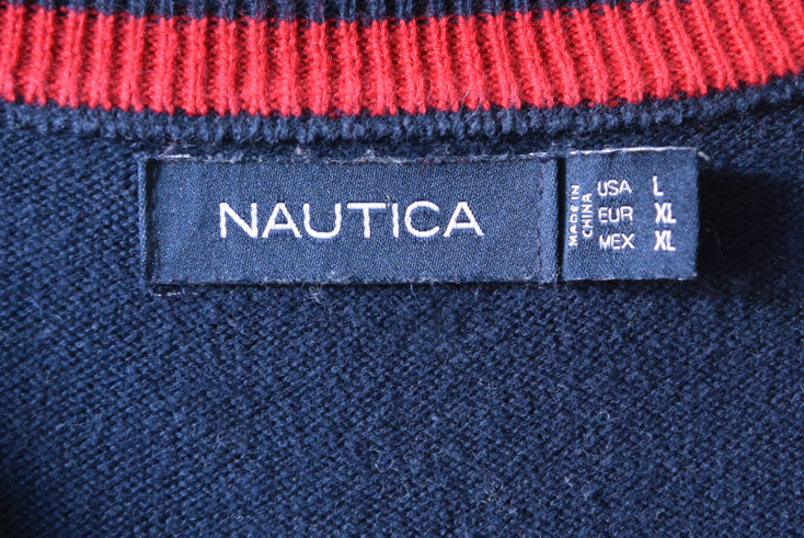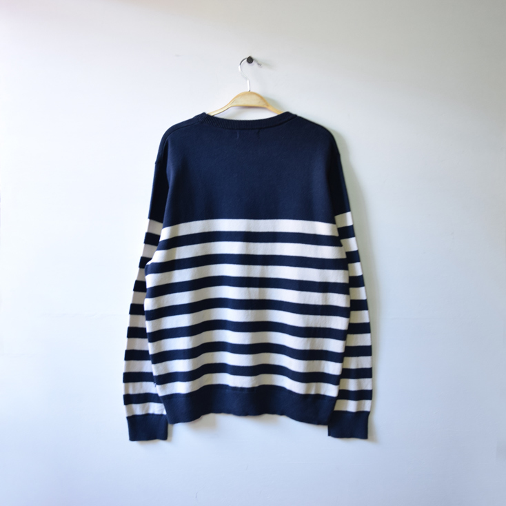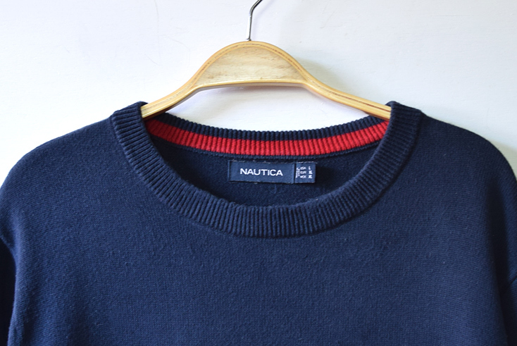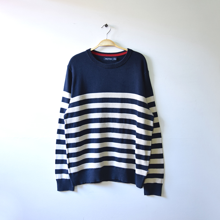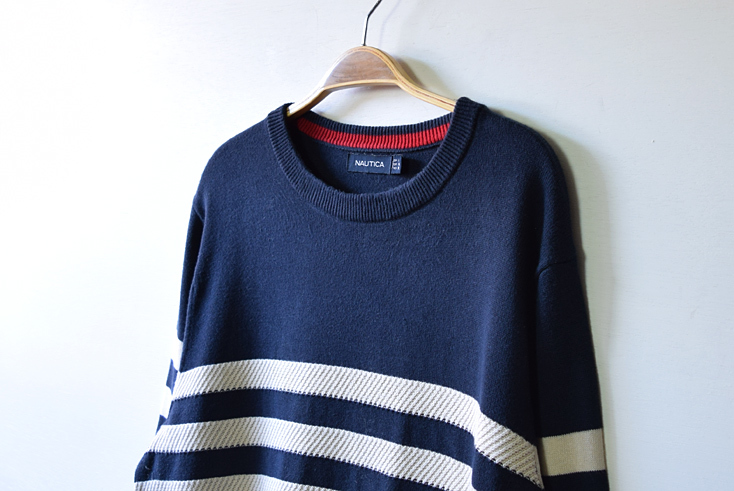 【送料無料】ノーティカ コットンニット ボーダー セーター メンズL 紺色 NAUTICA アメカジ 古着 CH0879