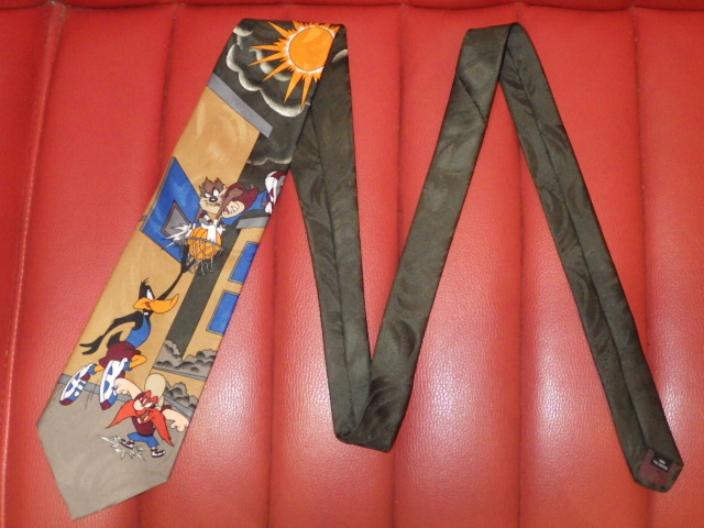 90'Sビンテージ♪ ルーニーテューンズの人気キャラ、タズマニアデビルのネクタイです♪ サイズは実寸で、全長:145、剣幅:9.8cmくらい、素材はポリエステル、カナダ製です♪ 状態は、未使用デッドストックでの入荷で良好です♪ キャラクター物の可愛いネクタイをお探しの方、お好きな方、宜しくお願いします♪