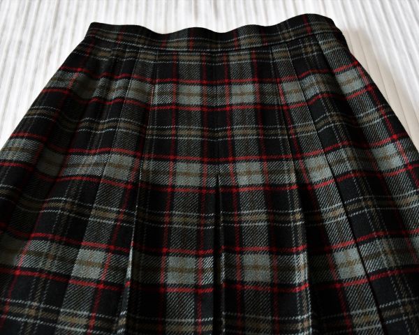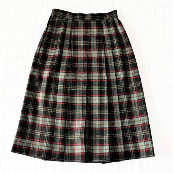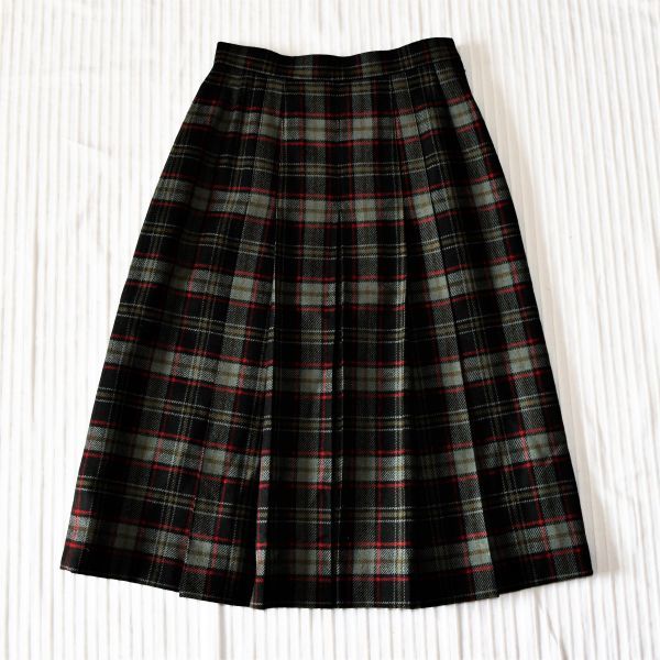 | ★ダックス★お洒落なチェックのDAKS柄★ お洒落な深緑 厚手のボックスプリーツスカート | ||
