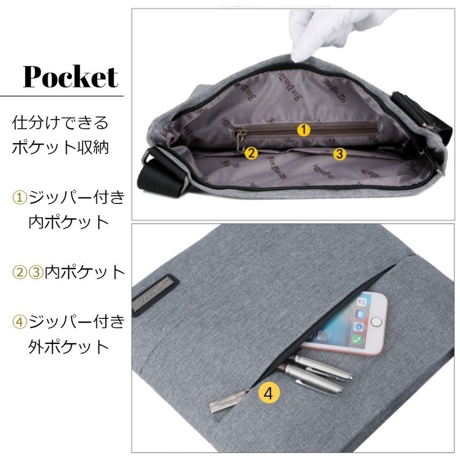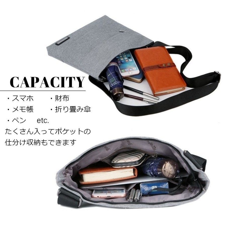 ショルダーバッグ メンズ 斜めがけ 軽い ビジネスバッグ 薄い 軽量 グレーs
