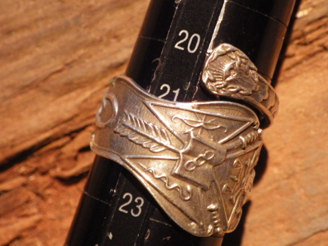 フリーメイソン系の秘密結社オッドフェローズのビンテージスプーンを使用して作られた、たいへん珍しいスプーンリングです♪